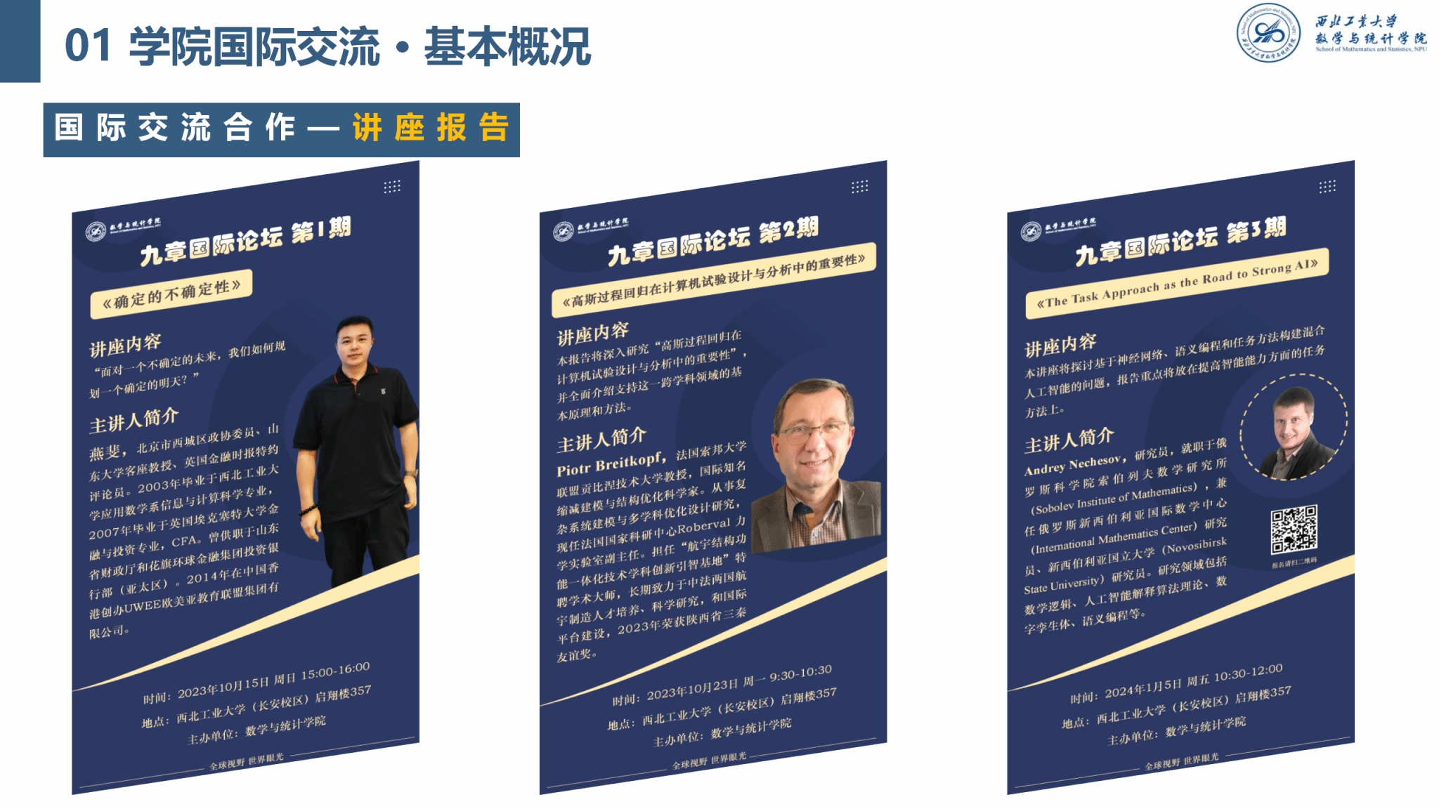 公司秉承“深耕欧洲,拓展俄乌,辐射亚洲”工作思路,持续深化与英国布里斯托大学(QS55)、英国纽卡斯尔大学(QS173)、荷兰特文特大学(QS117)等在本硕博人才培养和科学研究层次的交流合作,拓展新加坡国立大学(QS8)、新加坡南洋理工大学(QS26)、香港理工大学(QS65)、香港中文大学(QS47)、香港科技大学(QS60)、香港城市大学(QS75)、加拿大菲尔兹数学科学研究所国际合作渠道;推进与俄罗斯新西伯利亚国立大学(QS246)、Sobolev索伯列夫数学研究所,圣彼得堡国立大学(QS234)及爱尔兰都柏林圣三一大学(QS98)本科海外毕设、硕士双学位和科研合作;成功与意大利巴勒莫大学签订院级博士联合培养合作协议。同时,组织教师赴外蒙古科技大学进行学术交流,续签2+2本科双学位项目(反向培养)。