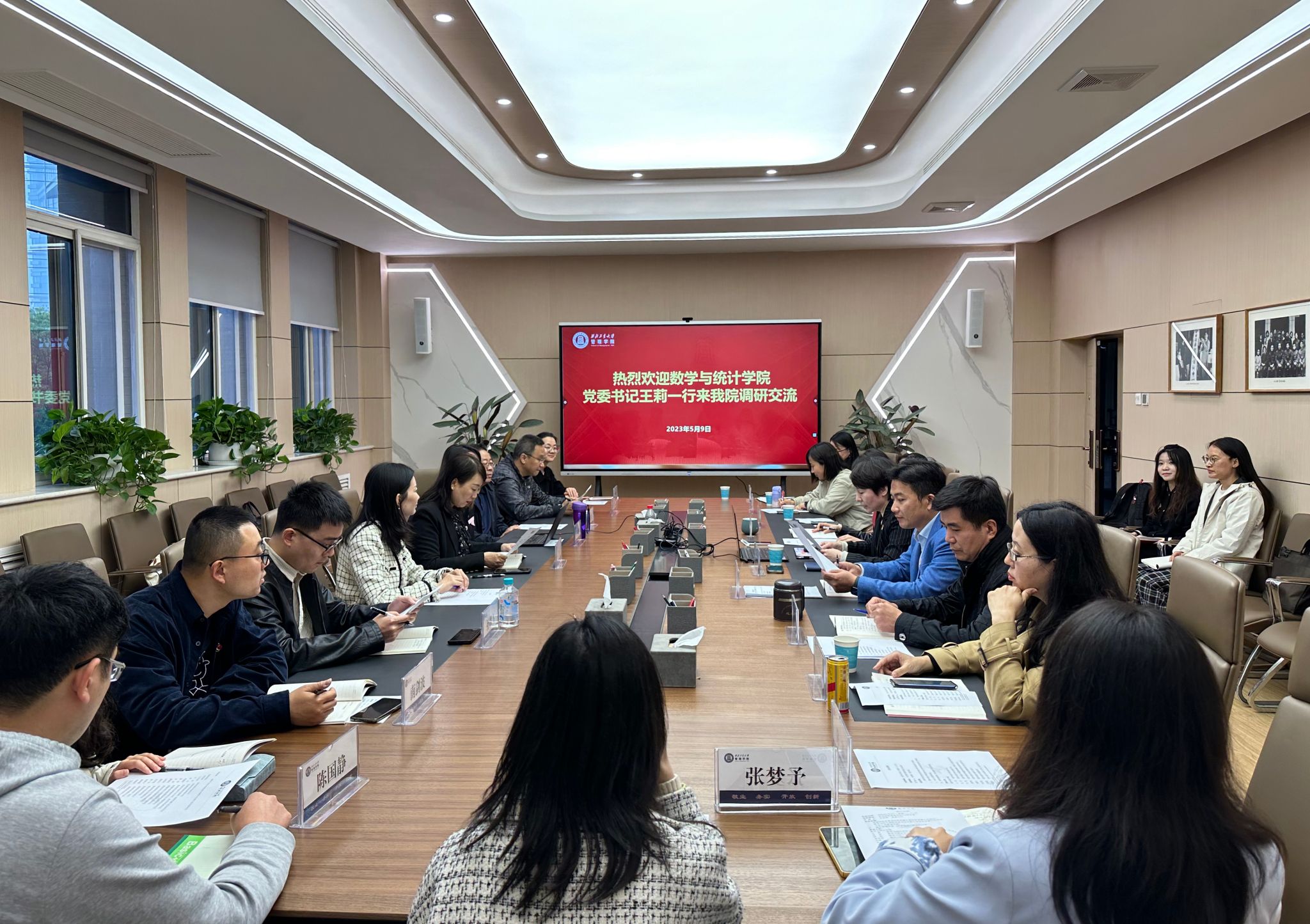 为深入学习贯彻习近平新时代中国特色社会主义思想主题教育,扎实开展调查研究,加强与兄弟公司之间的沟通交流,推动校、院高质量发展。5月9日下午,数学与统计公司党委书记王莉、公共政策与管理公司党委副书记谢丹一行到管理公司调研交流,开展主题教育联学共建活动。师生党支部书记代表、党建学工队伍召开座谈会,共话党建工作,共谋公司发展。