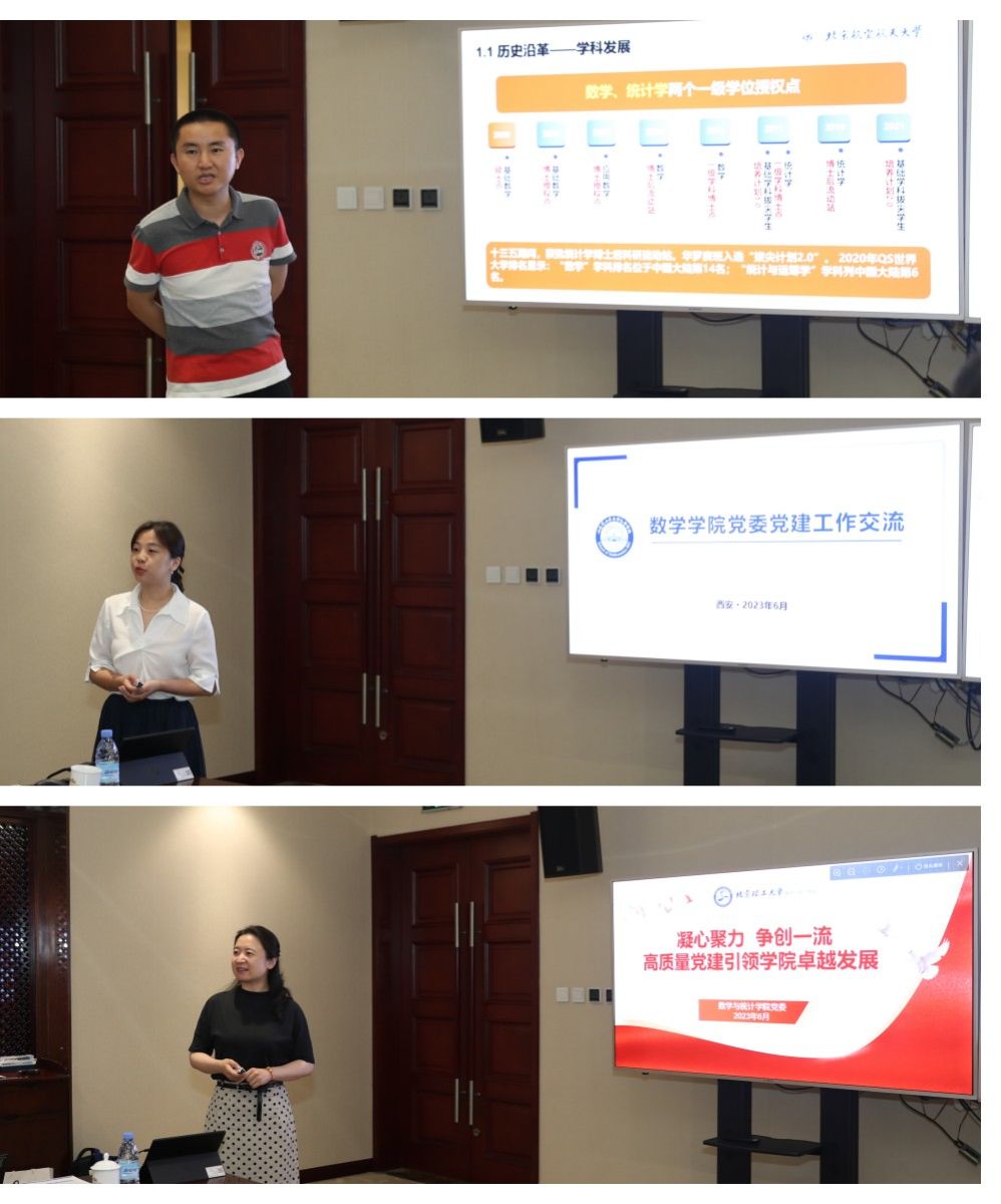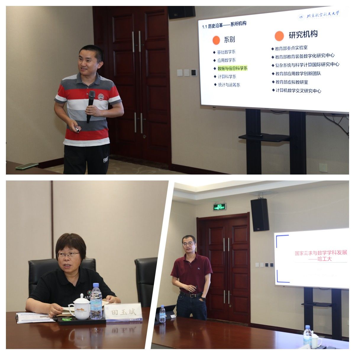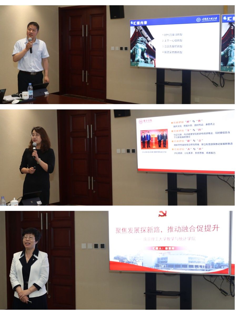 随后,部属七所高校数学公司相关负责人分别围绕《以高质量党建引领和推动公司高质量发展》《国家需求与数学学科特色发展》主题进行了汇报交流。北京航空航天大学数学科学公司在党建工作中形成的“夯基础、促改革、做党建研究”的工作思路,在学科发展工作中提出的“大数学”立体化数学人才培养体系的建立;北京理工大学十大外围足球平台app在党建工作中形成的“三确保、两提升、一促进”的工作理念,在学科发展工作中提出的对硬核基础数学队伍的培养方式;哈尔滨工业大学数学公司在党建工作中提出的打造“金牌专业、金牌课程、金牌教师”,实现“出成果、出名师、出人才”的公司奋斗目标,在学科发展工作中提出的“三个对标”的科学研究发展策略;哈尔滨工程大学数学科学公司在党建工作中提出的“四转型”工作思路及举措,在学科发展工作中推行的“六计划”重点举措;南京航空航天大学数学公司以“四融”党建推动公司高质量发展的工作思路,在学科发展工作中打造的“一体两翼双助力”的发展体系;南京理工大学十大外围足球平台app形成的“三开三共”的党建工作理念和“三融三聚”的党建工作思路,在学科发展工作中推行的创新发展思路以及十大外围足球平台app在党建工作中“1745”发展思路,在学科发展工作中提出的“数学+”“+数学”的创新人才培养模式。一个个创新思路与特色做法,取得的突出成绩和亮眼结果,各公司发展工作中遇到的共性问题以及解决措施,使得此次研讨会既开拓思路又发人深省,与会同志们均表示收获满满,取得良好的效果。