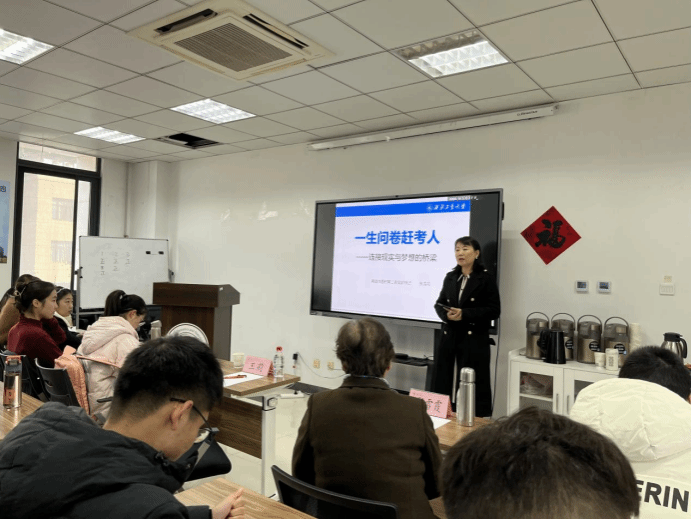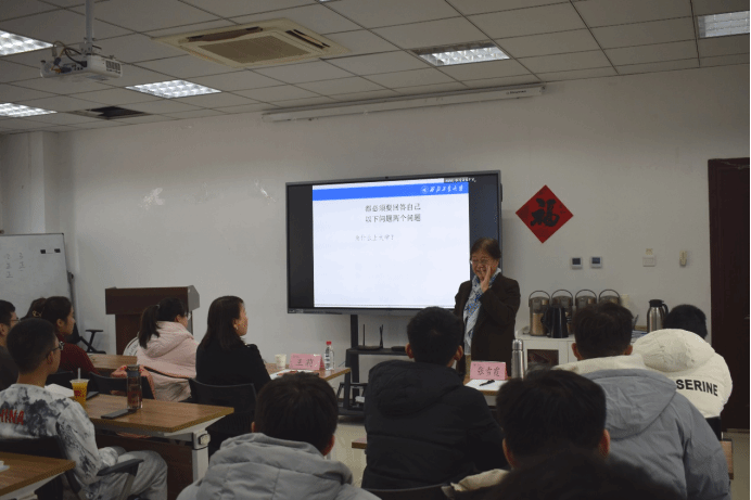 张雪霞以《一生问卷赶考人——连接现实与梦想的桥梁》为题开展讲座,通过讲述十大外围足球平台app老教授们的故事来激励同学们,希望各位同学以他们为榜样,见贤思齐。