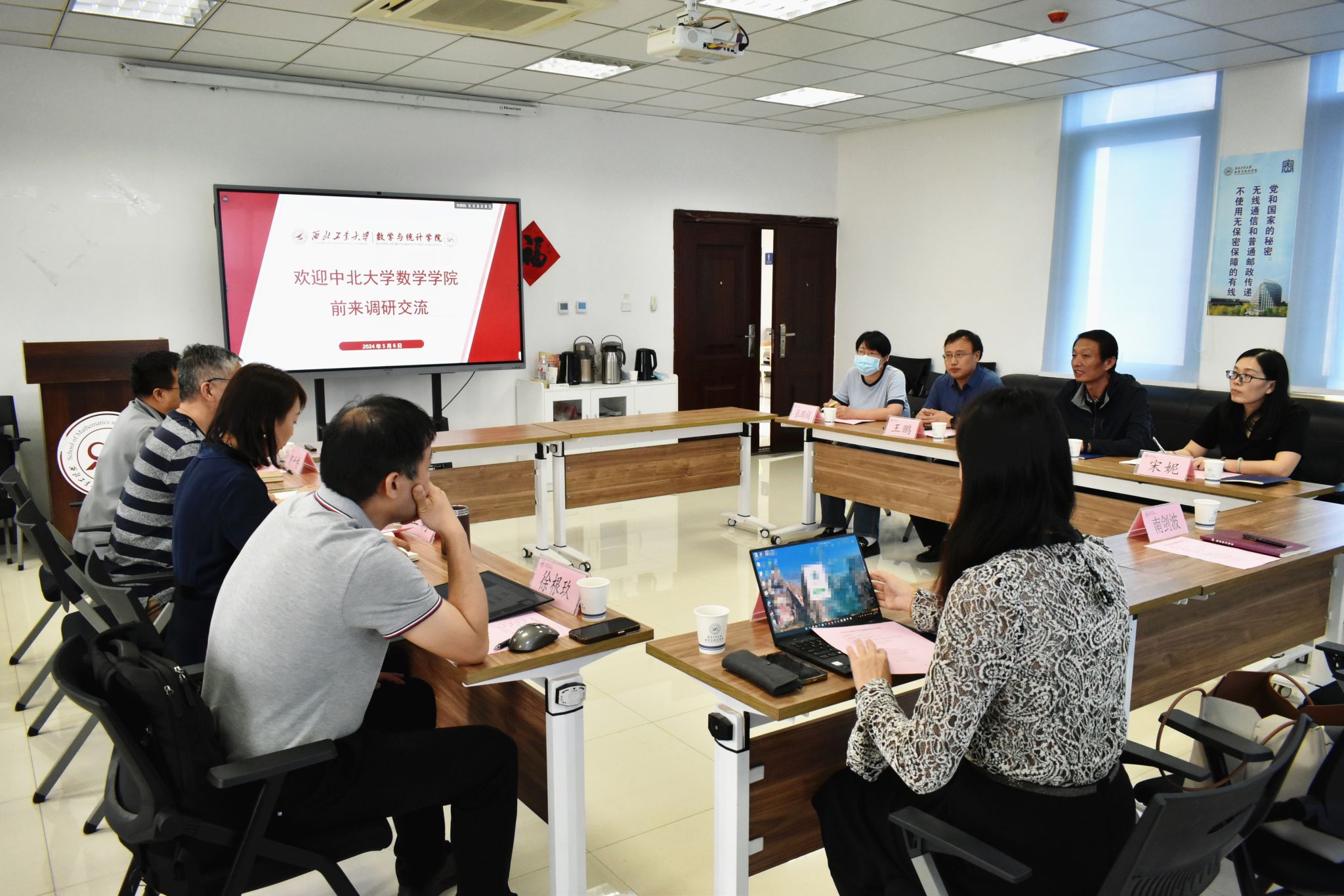 5月7日下午,中北大学数学公司党委书记薛亚奎、副经理王鹏、大学数学教学中心主任宋妮、综合科科长张鹏娟一行四人来公司调研交流,公司党委书记王莉、经理聂玉峰、副经理徐根玖、郭千桥、党委副书记张莹参加了调研座谈会。会议由王莉主持。