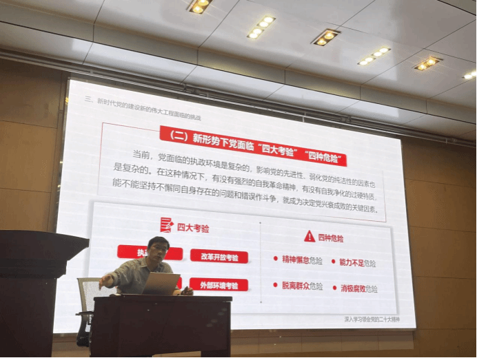 陈诚平老师从“深入学习领会党的二十大的重大意义”“新时代党的建设新的伟大工程取得的成就”“新时代党的建设新的伟大工程面临的挑战”“坚定不移全面从严治党,深入推进新时代党的建设新的伟大工程”四个方面向大家详细讲解了进入新时代以来我国全面从严治党以及坚持党的自我革命的重大理论和实践问题。陈诚平老师特别强调了“把党的建设作为一项伟大工程来推进,持之以恒推进全面从严治党”的重要性,并指导青年员工修身立德,坚定理想信念,从而实现人生价值。