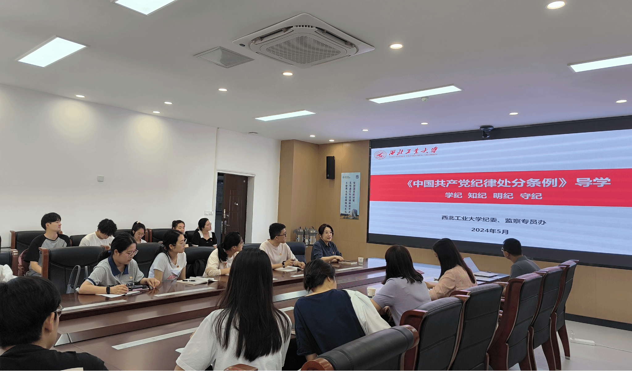 为全面深化党纪学习教育工作,加强党员干部对党规党纪的了解掌握,进一步推动员工学条例、明纪律、坚底线,2024年5月21日,十大外围足球平台app邀请纪检监察机构第二纪检监察室主任王莹老师开展了《中国共产党纪律处分条例》导学专题党课,公司党委书记王莉、副书记张莹、组织员南剑波、学工秘书曹立帆及全体员工党支部书记和组织委员参与本次学习。