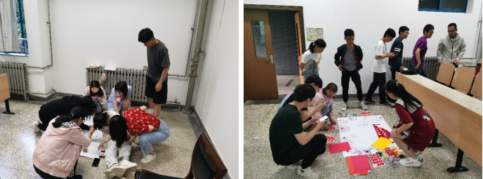 党课活动上,王莉老师首先将同学们按所在家乡进行分组,给同学们介绍了此次团队活动的规则,并引导员工在规定时间内动手制作具有自己家乡特色的小组海报,在整个制作过程中,大家积极交流,团结合作,短时间内迅速“破冰”,在锻炼自己表达能力的同时,也增强了团队的凝聚力。