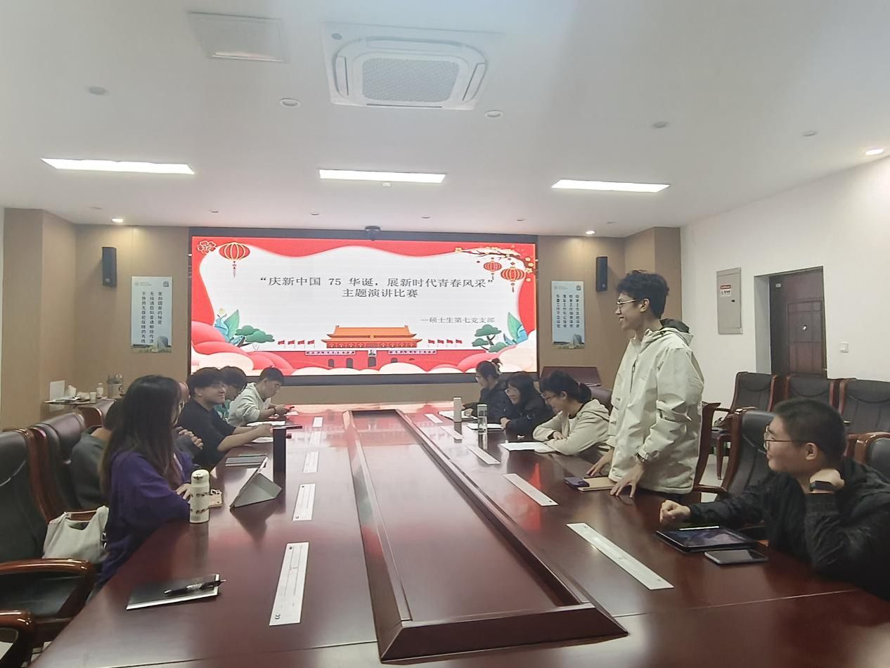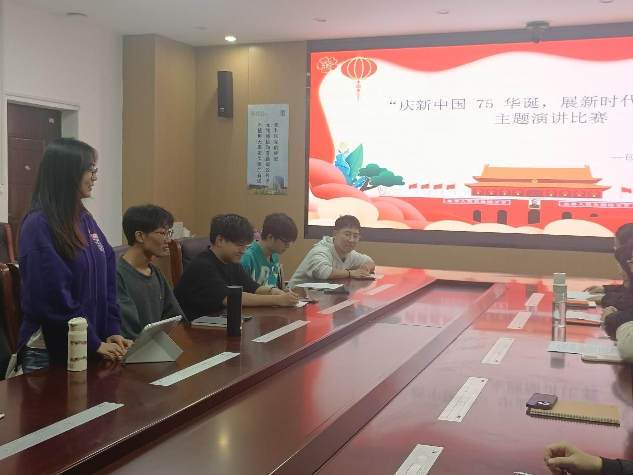 10月14日晚,十大外围足球平台app硕士生第七党支部组织“庆新中国75华诞,展新时代青春风采”主题党日活动,学习习近平总书记在全国民族团结进步表彰大会上关于铸牢中华民族共同体意识的讲话,并开展了“庆新中国75华诞,展新时代青春风采”演讲比赛。活动由党支部书记黄凤同志主持,支部全体党员参加了此次活动。