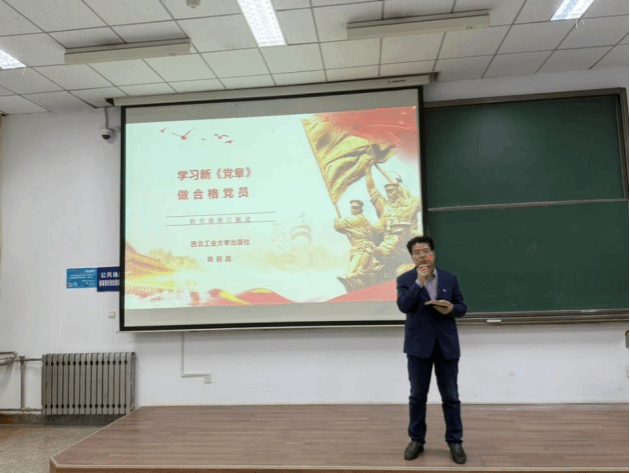 讲座伊始,蒋民昌老师以党章的概念为切入点展开了本次培训。蒋老师首先带领全体成员回顾了百年党史,从中共一大到中共二十大,从波光粼粼的嘉兴南湖到巍峨肃穆的人民大会堂,共同见证《党章》在血与火的淬炼中生根发芽,在顽强不屈的斗争中汲取力量,在艰难曲折的摸索中茁壮生长。