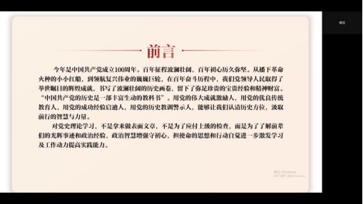 首先郑鑫伟同志对支部概况做了简述,并强调了党史学习的重要性,他指出开展党史学习教育是坚定信仰信念的客观需要、是推进自我革命的内在要求、是庆祝建党百年的重要行动。