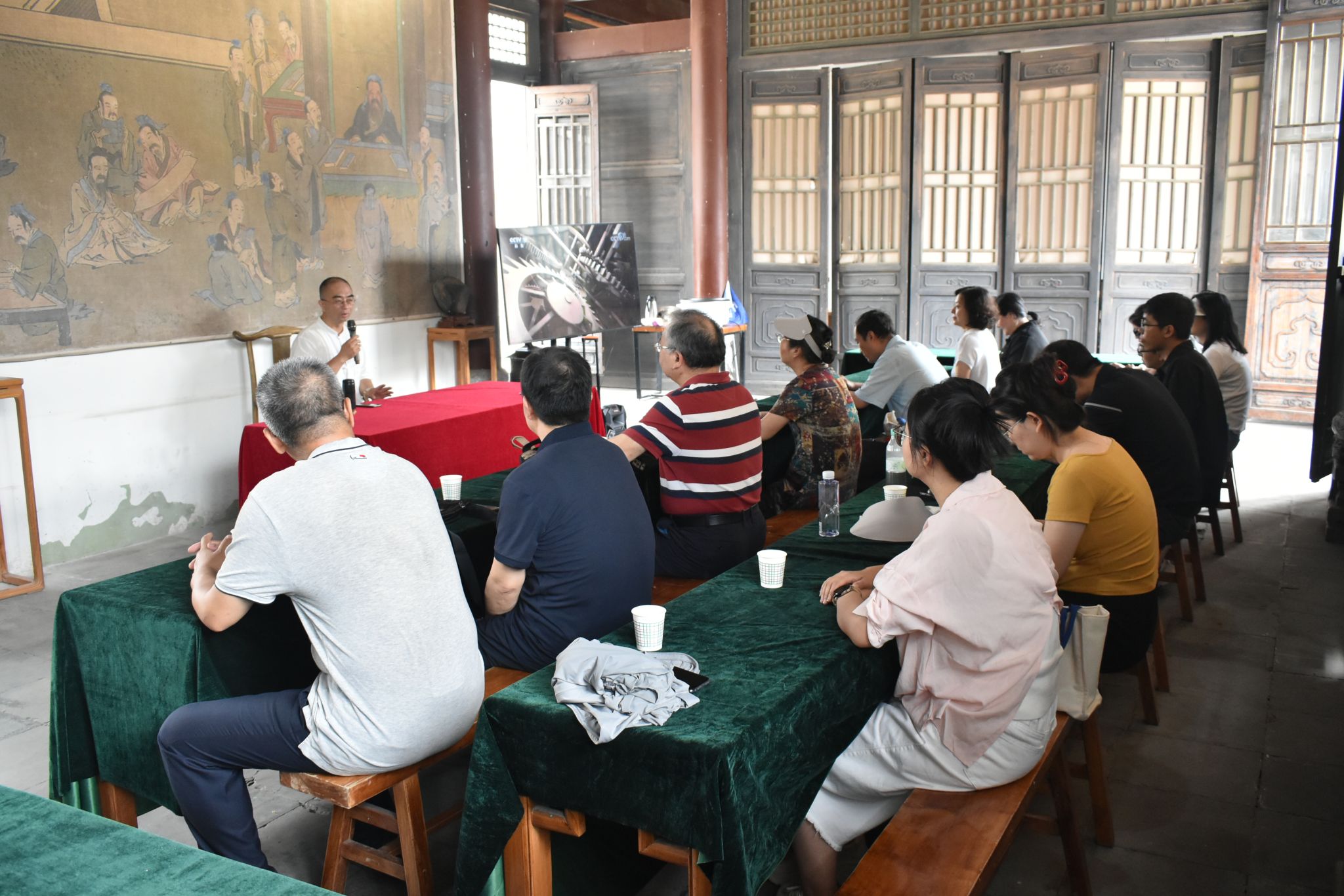 在芸阁书院中,牛锐经理又以“学为好人”精神为脉络,剖析关学思想中“德性培养”“礼义教化”“家国担当”三个维度,做了题为“砥柱人间是此峰—从关中大儒牛蓝川先生的‘学为好人’到‘廉洁文化’”的讲座报告。他结合牛蓝川先生“守规矩、有教养”的家风家训,进一步强调了廉洁文化的根基在于“修身齐家”的传统智慧。报告内容深刻,实例详实,引得大家阵阵掌声。