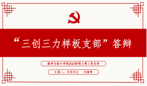 首先,2020级硕士第三党支部书记刘禧婵进行了“三创三力样板党支部”的答辩分享。她从“学而思”、“思而悟”、“悟而行”、“勇追梦”四个方面回顾了支部建设及活动开展等情况,并提出了下一阶段支部的工作思路。