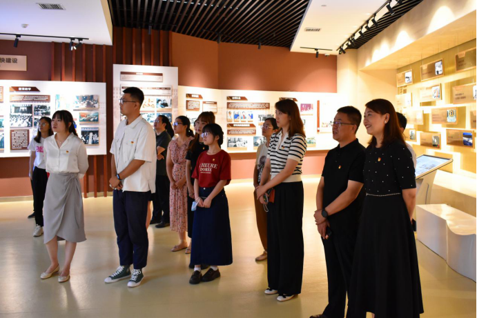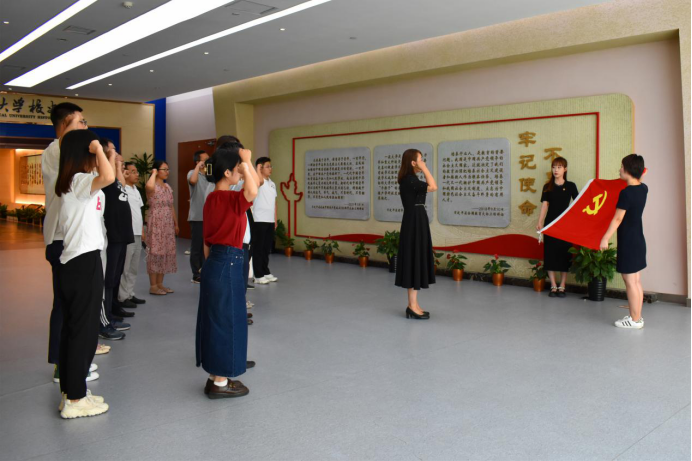 李长宏书记一行首先来到了十大外围足球平台app校史馆,先后参观了序厅、追根溯源、雄鹰展翅、翱翔腾飞和春华秋实五个部分,了解了公司发展历史、大学文化,以及典型人物和动人故事。参观结束后,两院的师生党员共同在党旗下庄严宣誓,重温入党誓词。