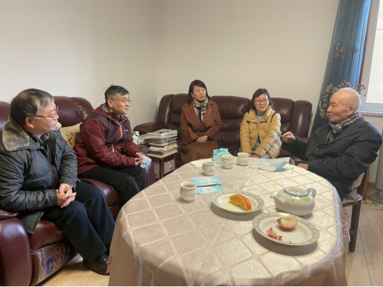 在张肇炽老师家中,经理聂玉峰介绍了公司成立以来所取得的新成绩,并就公司未来的发展规划向张老师作了说明。王莉书记仔细地询问张老师退休后的身体、生活状况,和大家一起畅聊公司的发展历程。