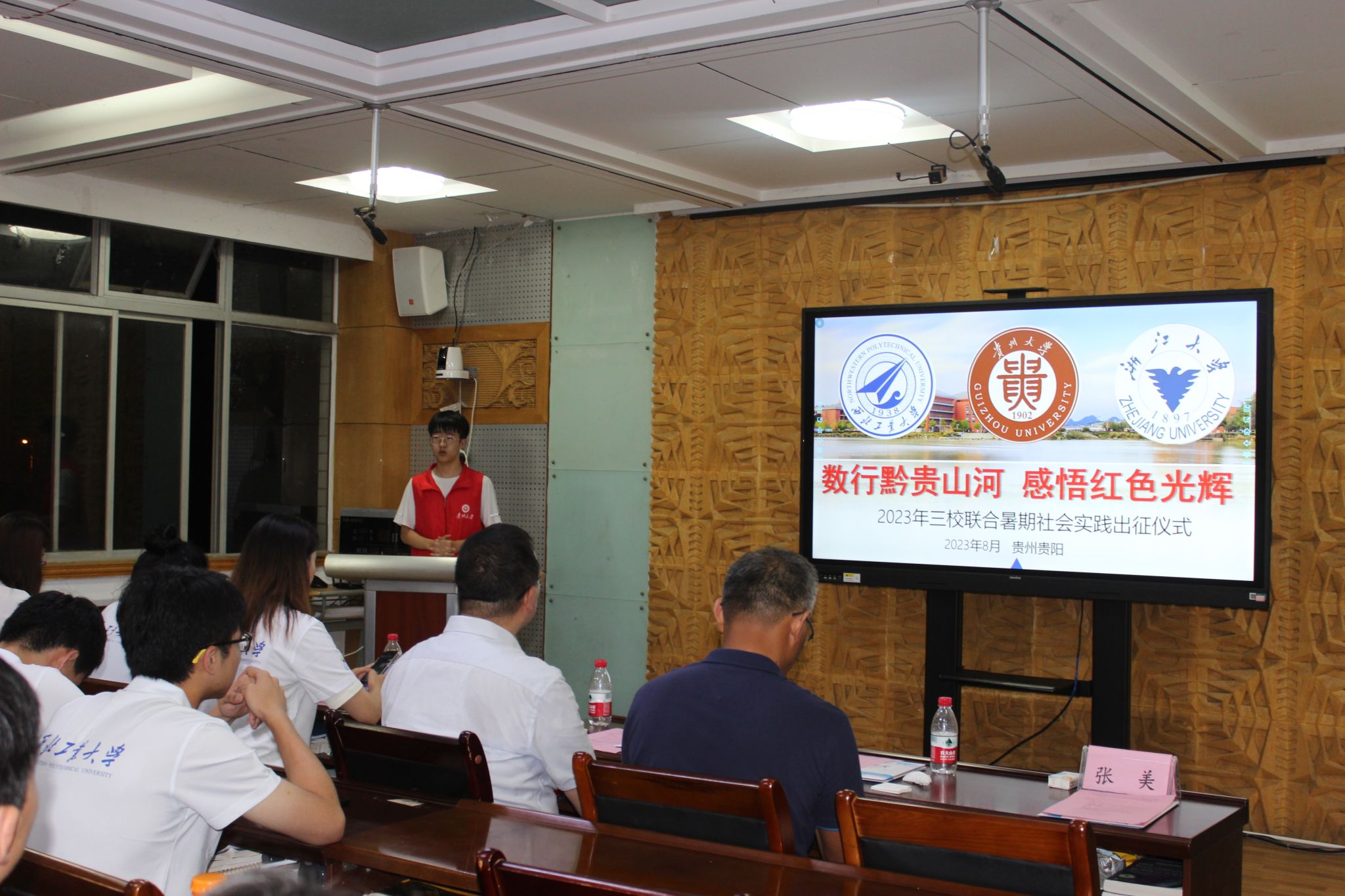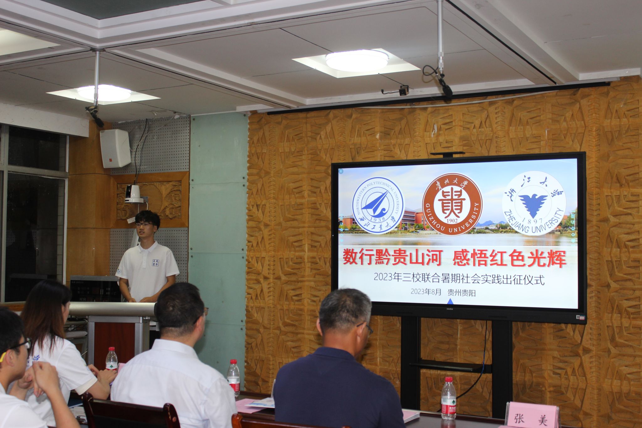 2023年8月5日,十大外围足球平台app、贵州大学及浙江大学三校联合社会实践出征仪式在贵州大学东校区博学楼329会议室举行。贵州大学十大外围足球平台app经理王锦荣教授、贵州大学学术委员会办公室主任贾平生教授、十大外围足球平台app数学与统计公司党委副书记张莹教授、十大外围足球平台app公司办公室戴卓老师、贵州大学十大外围足球平台app辅导员张美老师出席,三校实践队全体成员22人参加。会议由贵州大学十大外围足球平台app团委书记高洪老师主持。