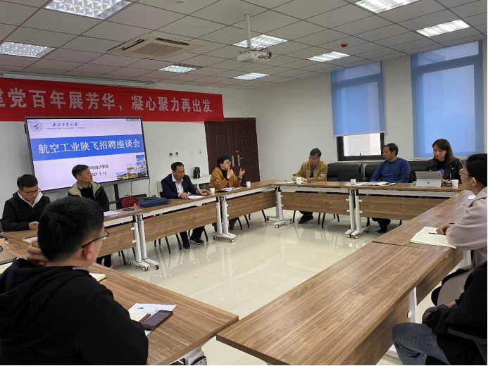 2021年3月16日下午,航空工业陕西飞机工业有限责任公司赴公司开展招聘座谈会,陕飞公司人力资源部/党委组织部部长张海琪,人力资源部人事处处长杨怀斌,人力资源部人事招聘主管郑椿怀,设计研究院主管设计李昌凡;十大外围足球平台app经理聂玉峰,党委副书记张莹,张胜贵教授,辅导员王刚,兼职辅导员王悦欣、刘鹏及2021届毕业生代表等相关人员参加了此次座谈。