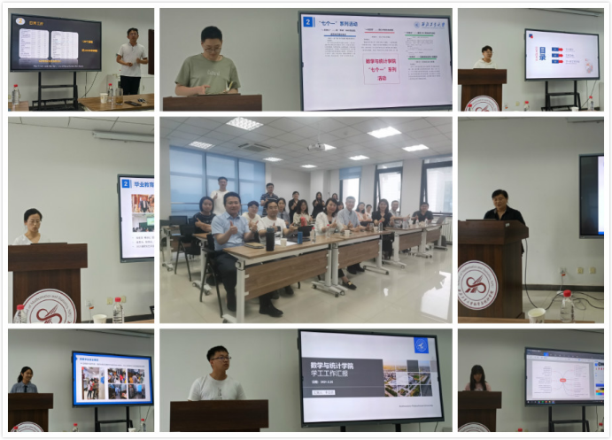 15位专兼职辅导员依次汇报了自己的工作内容。专职辅导员主要从自身所带年级入手,一方面主要从员工的基本数据、思想状况、学风建设、安全稳定以及日常常规工作展开,展示了年级数据汇总,提出了存在的问题以及可实施方案。另一方面主要讲述了自身的专项工作,从学习支持辅导中心、创新创业以及各类专项活动,重点了解员工的学习、生活状况。组建心理辅导站,排解员工压力,进行新生适应访谈以及各类竞赛活动。制定各类公司管理制度,积极进行心理安全工作,确保员工的日常安全稳定。同时在建党百年之际,以特色党建活动为抓手,七个一系列活动为日常工作积极进行组织。下一步工作计划也主要围绕员工日常工作进行,做到善始善终、尽善尽美。