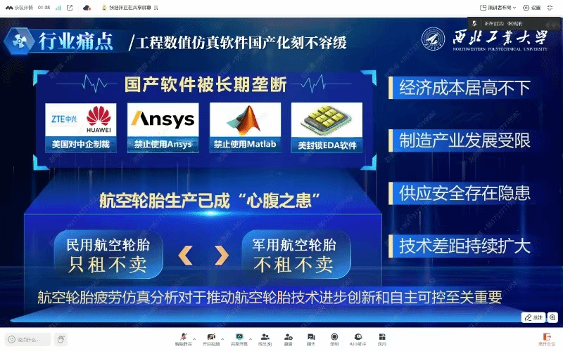 羊教授以 “挑战杯项目介绍” 为主题,结合自身的经验,给同学们具体讲解了参加比赛的几个具体项目:其中一个项目是有关海洋地形测绘,。由于真实海洋地形复杂的特点,以理想化海底坡面为研究对象,分析二维视域下测线沿线海水深度、条带覆盖宽度、相邻条带重叠率的静态计算机制。通过航空轮胎疲劳仿真分析,进而推动航空轮胎技术进步创新和自主可控。