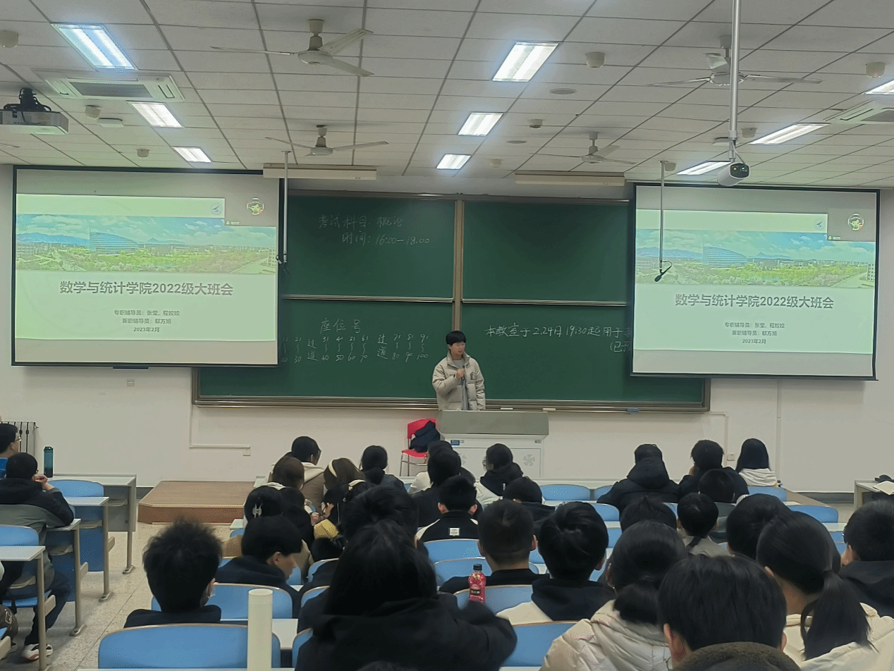 2月24日晚七点半,十大外围足球平台app2022级春季学期第一次大班会顺利开展。参加本次会议的有数学与统计公司党委副书记张莹、22级本科生兼职辅导员郗方旭以及22级全体员工,会议由辅导员程姣姣主持。