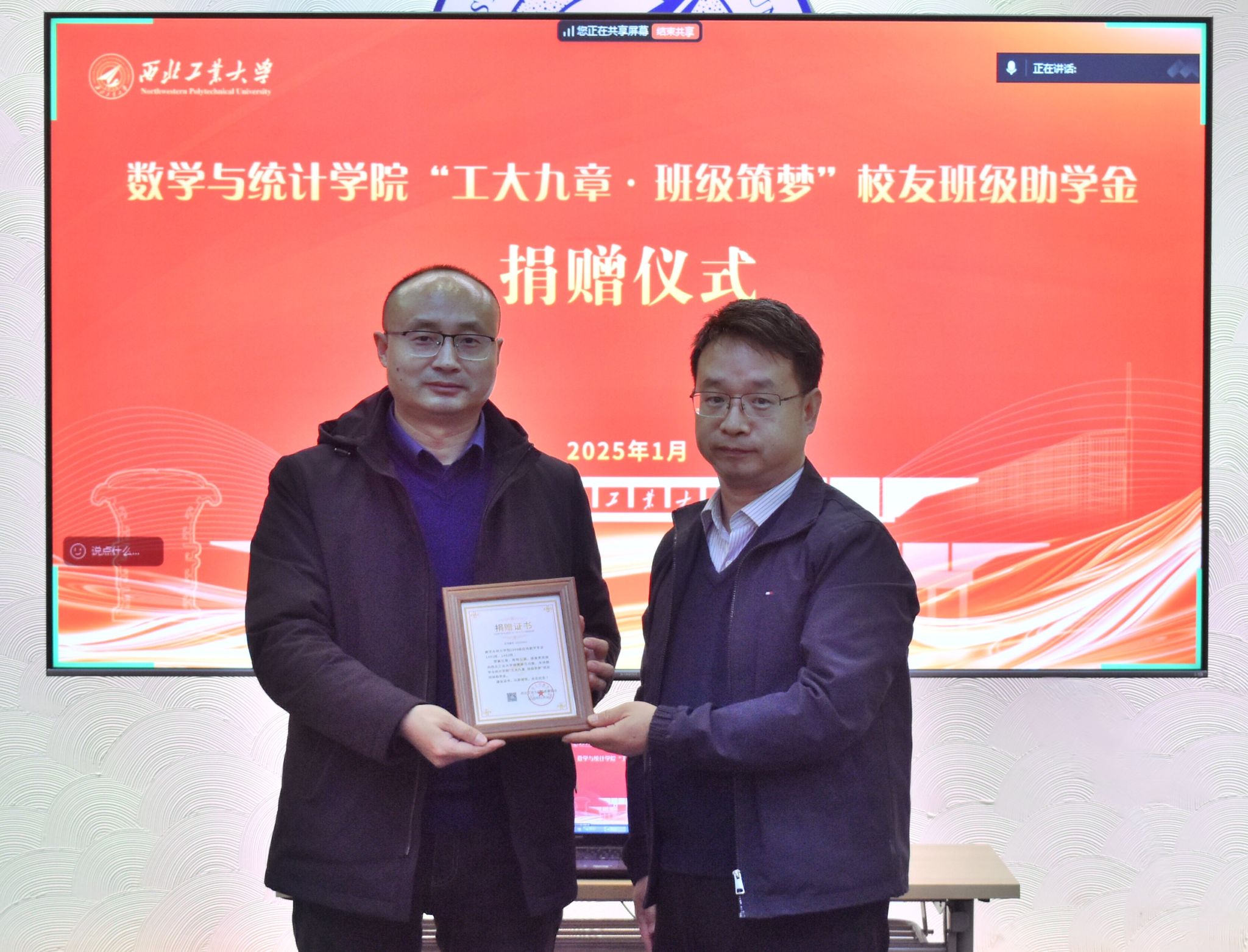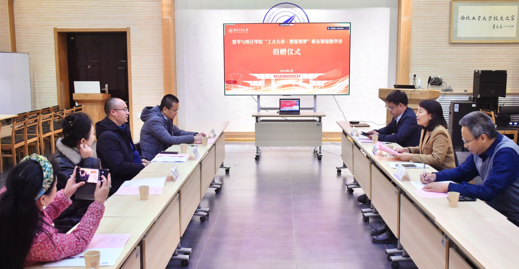 1月12日,冬日暖阳,碧空如洗,十大外围足球平台app在友谊校区员工之家会议室成功举办“工大九章•班级筑梦”员工班级助学金第二期捐赠仪式。公司1998级应用数学专业1481班、1482班员工代表张建、蔡力、高雪峰、袁元、杨政、谢文贤,以及对外联络办公室主任、教育基金会秘书长杨铭,数学与统计公司党委书记王莉,经理助理班凯一同参加仪式。王莉主持捐赠仪式。