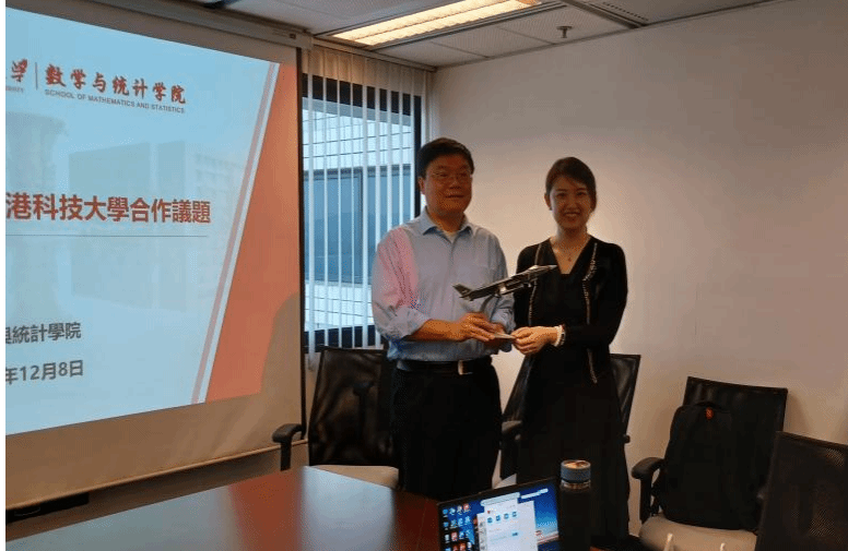 12月8日上午,公司代表团访问了香港科技大学,与香港科技大学数学系系主任徐昆教授、数学系终身教授陈北方、副主任钱铁铮教授,理公司国际事务主任严民教授及助理教授苏薇开展了座谈交流。经理助理刘晓刚详细介绍了公司人才培养情况及公司海外人才引智政策。双方就暑期国际学堂、暑期夏令营、本硕博人才培养等合作议题开展友好交谈。