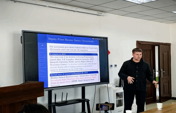 在讲座中,Andrey Nechesov研究员探讨了基于神经网络、语义编程和任务方法构建混合人工智能的问题。他提出,混合人工智能可以帮助我们建立智能城市和组织的智能数字双胞胎。讲座结束后,与会师生与Andrey Nechesov研究员展开了积极的讨论,分享了他们对讲座内容的疑虑和问题。