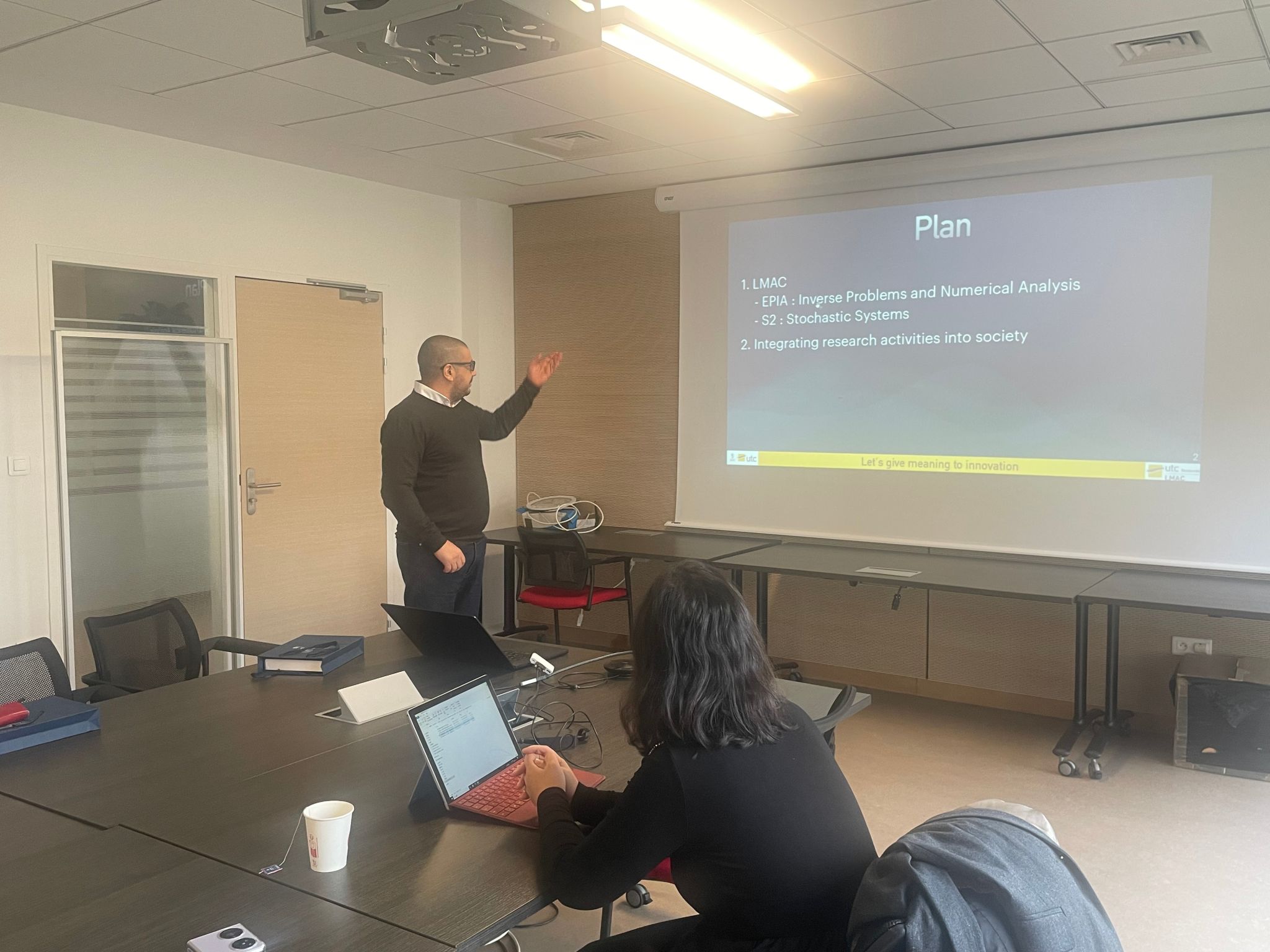 11月30日,经肖曼玉教授前期积极协调沟通,十大外围足球平台app代表团访问法国贡比涅技术大学数学所,洽谈两院合作事宜。对方出席人员包含数学所主任Salim Bouzebda教授、Faker Ben Belgacem教授、Nikolaos Limnios 教授以及Roverval实验室主任Piotr Breitkopf教授、Ludovic Cauvin教授。