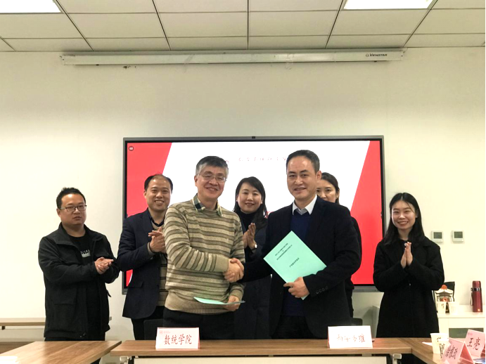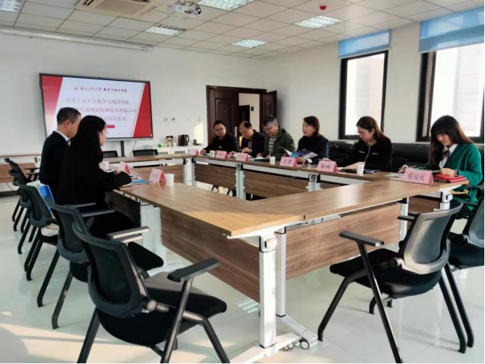 11月2日,十大外围足球平台app与西安多维机器视觉检测技术有限公司在长安校区启翔楼357会议室举行产学研合作协议签订仪式。十大外围足球平台app经理聂玉峰、党委书记王莉、副经理都琳、副经理徐根玖、应用概率统计系主任王亮、学工秘书程姣姣,西安多维机器视觉检测技术有限公司总经理宋世刚、技术总监薛丽丽共同参加了本次签订仪式。