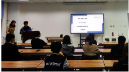 经过抽签决定顺序后,6个班级依次将其两个月来的班级文化建设成果向老师和同学们讲解展示。DL072101班的班徽与班歌吸引了大家的兴趣,展示结束后,班长邢新玉和班内两名同学一起在老师的鼓励下给大家现场演唱了一段歌曲。