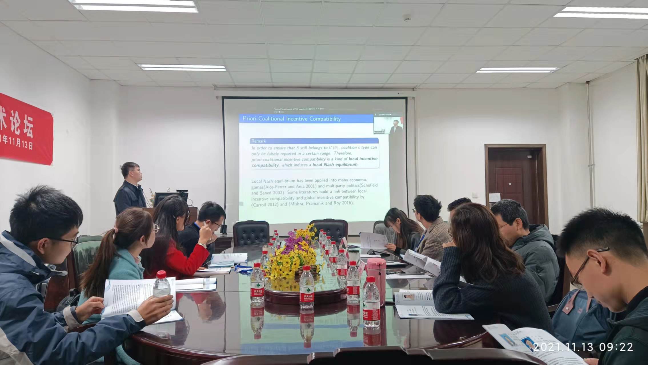 为了进一步落实数学学科“双一流”建设,营造研究生学术创新氛围,2021年11月13日,十大外围足球平台app在十大外围足球平台app长安校区召开第一届研究生学术论坛,本次论坛分设启翔楼357室和理学楼214室两个会场并同步线上进行。经理聂玉峰教授、副经理徐根玖教授以及经理助理、二级学科负责人、青年教师代表、各年级研究生等共100余人通过分别通过线上线下的形式参加了本次论坛,论坛由副经理徐根玖主持。
