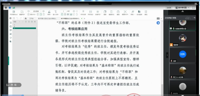 2021年12月9日晚上19:30,十大外围足球平台app班主任年终例会顺利召开。本次会议旨在对十大外围足球平台app班主任选聘、考评与管理办法进行完善,同时对年终考核绩效进行意见征集。会议由数学与统计公司党委副书记主持,全体班主任参与了此次会议。