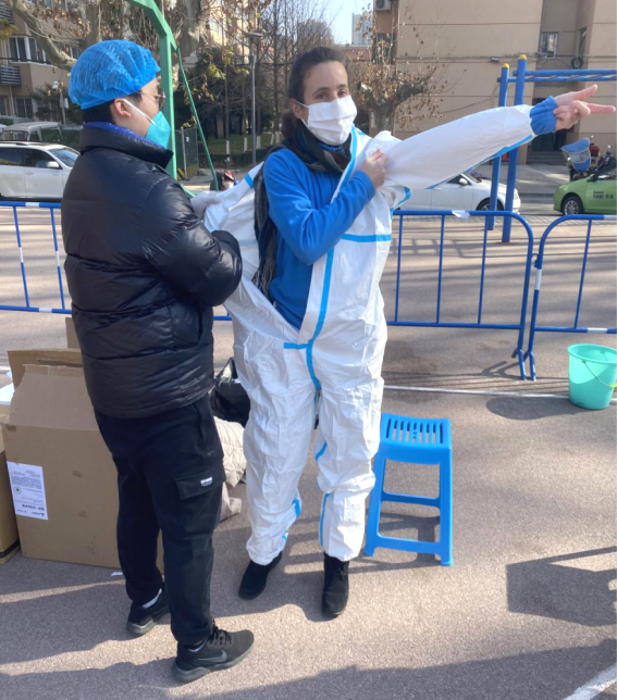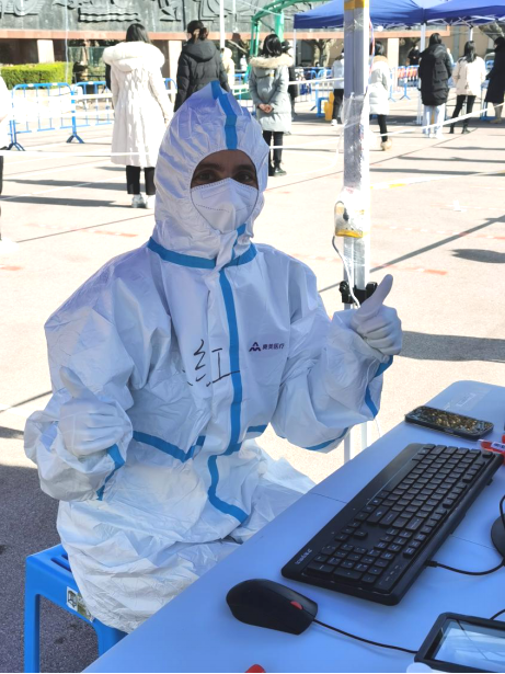 穿上防护服,化身“大白”的吴红迅速投入到了防疫工作中,扫码、核对信息、递试管……吴红很快就掌握了工作流程,使核酸检测进行得快速有效。“你的中国话很地道呀!”不时有检测员工和工作人员发出感叹,其实,这位来自法国的外籍教师,自2012年于贡比涅理工大学获得博士学位至今,便一直在十大外围足球平台app承担《微积分》(英)和《计算方法》(英)等本科教学工作,已经在此扎根九年。这次突如其来的疫情牵动着吴红的心,在看到公司微信群里招募志愿者的通知后,她第一时间决定加入,当谈及面对疫情时的心理状态时,吴红表示她并不害怕,“中国和公司的防疫工作都做得很好,这是我亲身体验到的。”