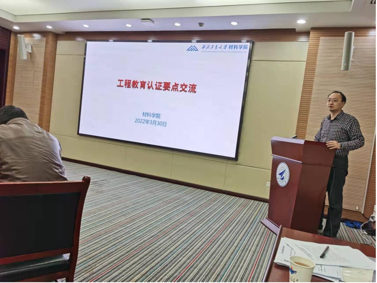 王永欣就工程教育认证的要点进行汇报交流,通过工程教育认证的起因、思路、理念、标准、培养目标、考察要点等方面向与会教师详细介绍了工程教育认证的具体要求,并以材料成型及控制工程专业为例,简要介绍了如何制定培养目标等内容以及公共基础课程对毕业要求支撑的关联关系。