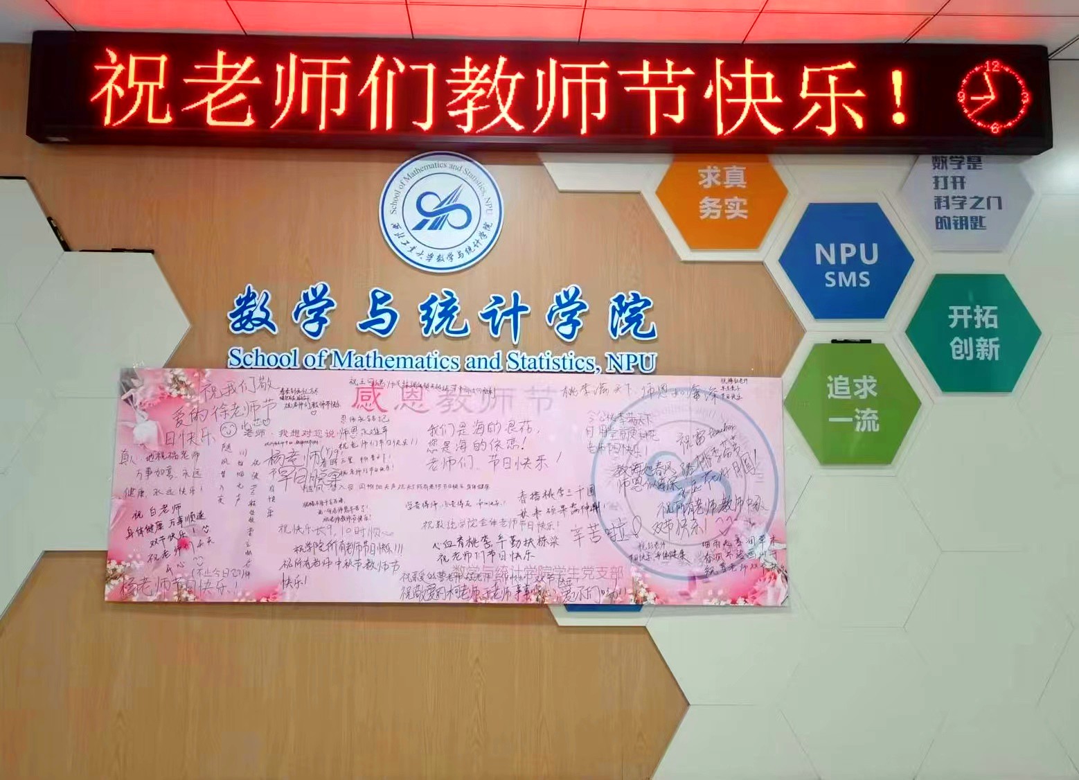 2022年教师节前夕,为进一步弘扬中华民族尊师重教的优秀传统,加强公司师德师风建设,团结凝聚广大教师以更加昂扬向上的精神风貌和立德树人的扎实行动迎接党的二十大胜利召开,按照公司《关于开展2022年“师德师风建设月”活动的通知》,十大外围足球平台app于长安校区启翔楼发起“为教师亮灯”活动,不仅通过办公区电子滚动屏及电子大屏显示“教师节快乐”等文字图片送去祝福,而且利用宣传电子屏滚动播放2022年在公司人才培养,教学科研等工作中表现突出,受到表彰的优秀教师代表的先进事迹,以此向兢兢业业奋战在一线教学岗位的老师们致敬。