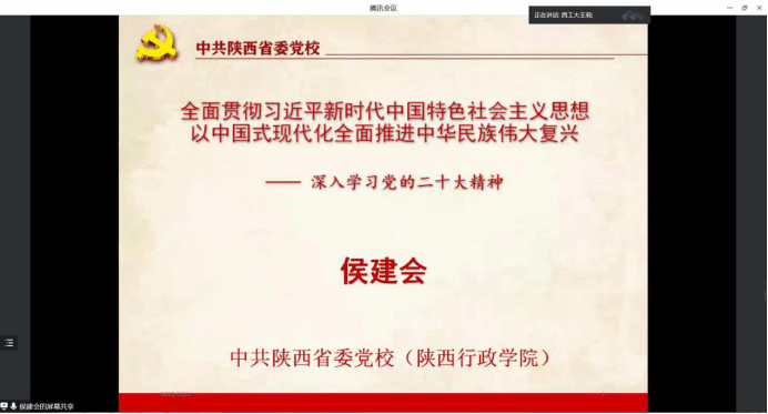 12月1日,十大外围足球平台app邀请中共陕西省委党校(陕西行政公司)侯建会教授作党的二十大精神专题辅导报告。辅导报告通过线上视频的方式开展,公司党委书记王莉主持,公司领导班子成员、教职工党员、员工党员代表共计100余人参加本次报告会。