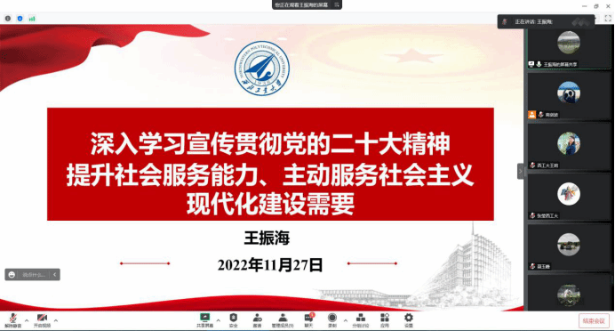 党委书记王莉表示,学习宣传贯彻党的二十大精神是当前以及今后一个时期的首要政治任务。作为一名基层党务工作者,更应该在全面学习上下功夫,学原文、悟原理,牢记为党育人、为国育才使命,胸怀“国之大者”,在实际工作始终牢记总书记的殷殷嘱托“空谈误国,实干兴邦”,以更扎实的举措,更务实的作风,踔厉奋发,勇毅前行,不断以新时代高质量党的建设引领公司事业高质量发展,落实好立德树人根本任务,为公司发展目标贡献出自己的全部力量。