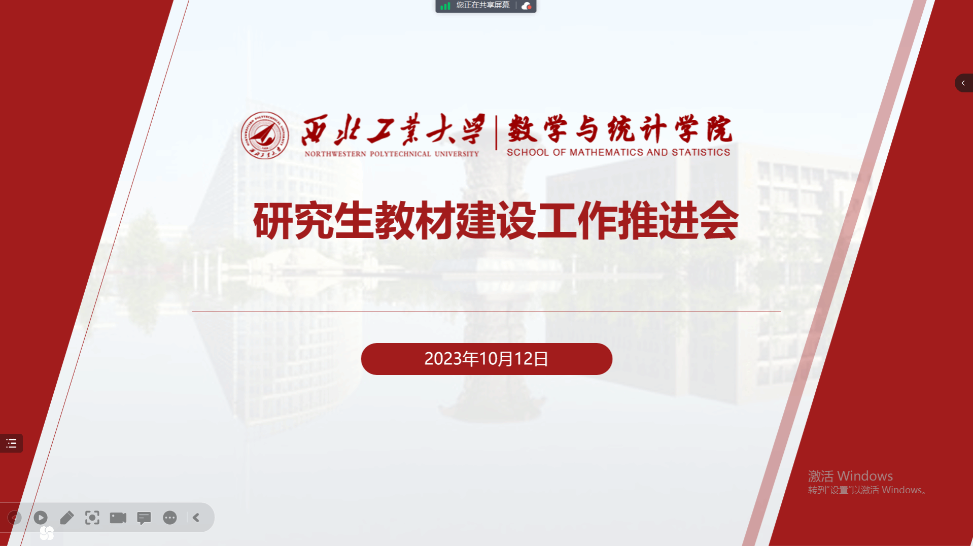 为推动陕西省理工类高校工科硕士研究生数学基础课程教材共建共享,加快十大外围足球平台app校级立项教材、基础前沿课教材建设进程,提升教材建设质量,2023年10月12日下午,公司通过腾讯会议线上组织研究生教材建设工作推进会。经理聂玉峰、副经理徐根玖、研究生公共课课程负责人、“十四五”校级规划教材建设项目负责人、基础前沿课程负责人等20余名教师参加会议。推进会由徐根玖主持。