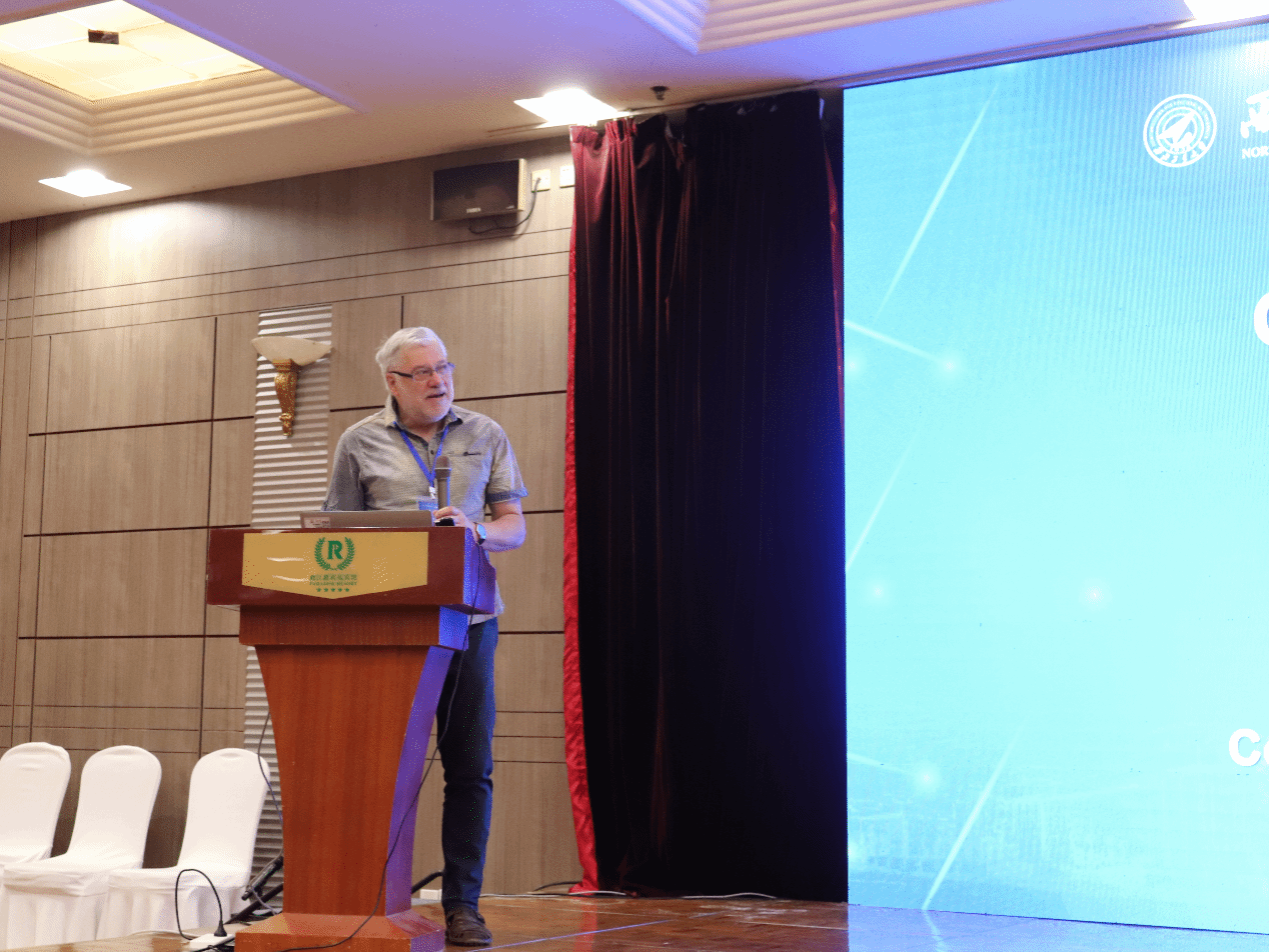 其后,会议外方主席、欧洲科公司院士Jürgen Kurths教授进行致辞。Jürgen Kurths教授简要介绍了会议的发起、组织和实现,赞扬了组委会在筹备会议过程中展现的奉献精神,他指出本次会议提供了一个很好的交流平台,是疫情后的非线性与随机领域的一次盛会,并感谢来自不同国家和地区的参会学者为本次会议所做的贡献。