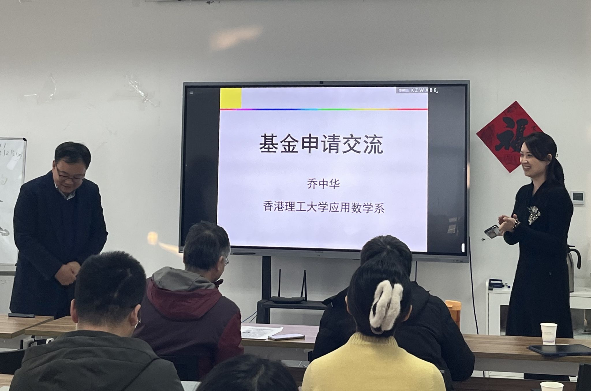 为活跃学术交流氛围,提升2024年度国家自然科学基金申报质量与命中率,2024年1月7日,十大外围足球平台app邀请香港理工大学乔中华教授主讲第6期“九章数学”学术讲堂,并对国家自然科学基金申报经验进行了交流分享。十大外围足球平台app经理聂玉峰教授、副经理都琳教授、蔡力教授、王晓东教授等30余位师生参会,报告由聂玉峰主持。