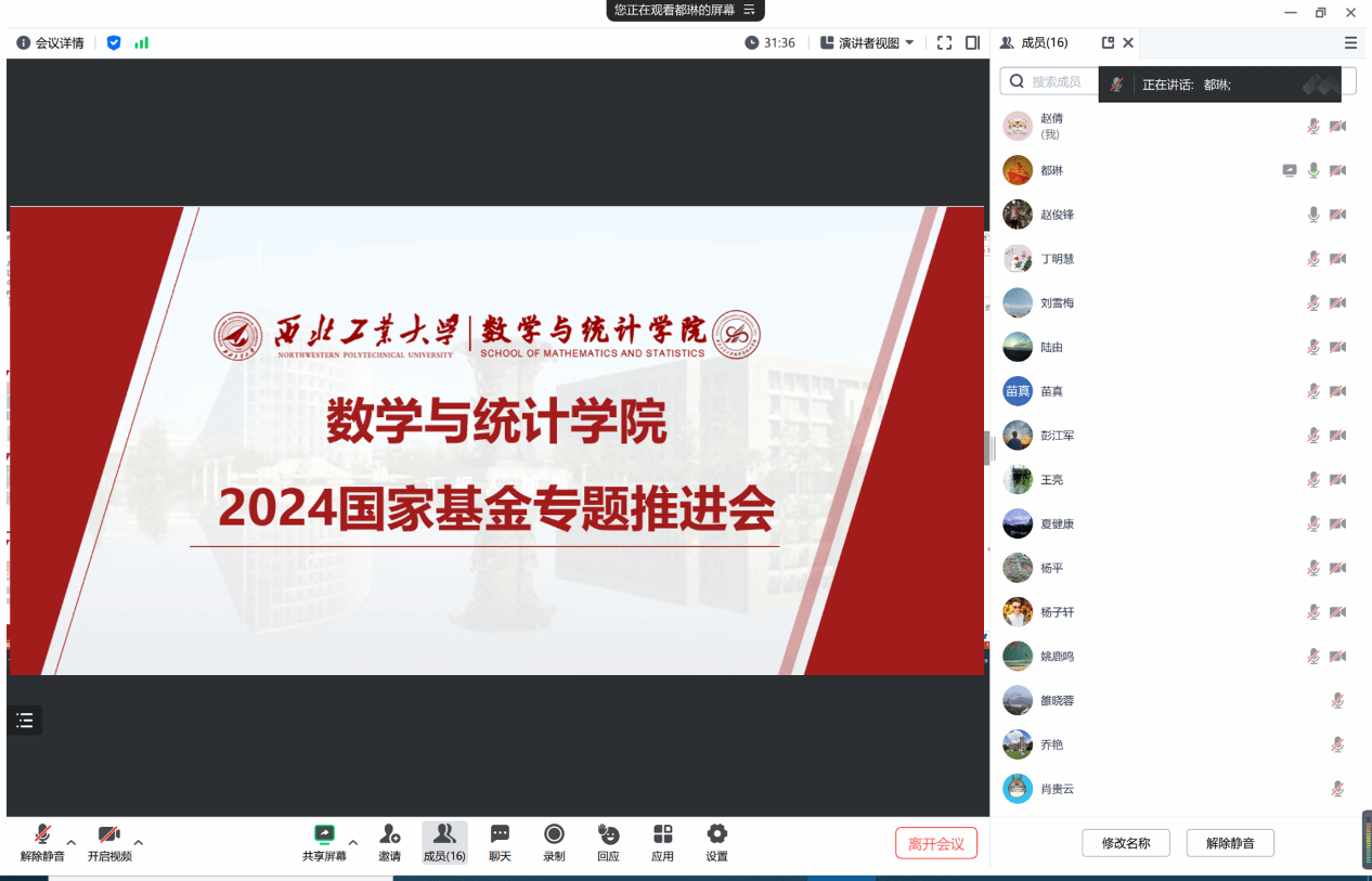 为切实提升公司2024年度国家自然科学基金申报质量,加强有组织科研,全面守好基金出口关,2月19日,十大外围足球平台app召开了2024年度国家自然科学基金专题推进会,本次会议主要面向首次申请基金的青年教师。公司副经理都琳教授、系主任陆由、赵俊峰、王亮及近20位青年教师线上参会,会议由都琳主持。