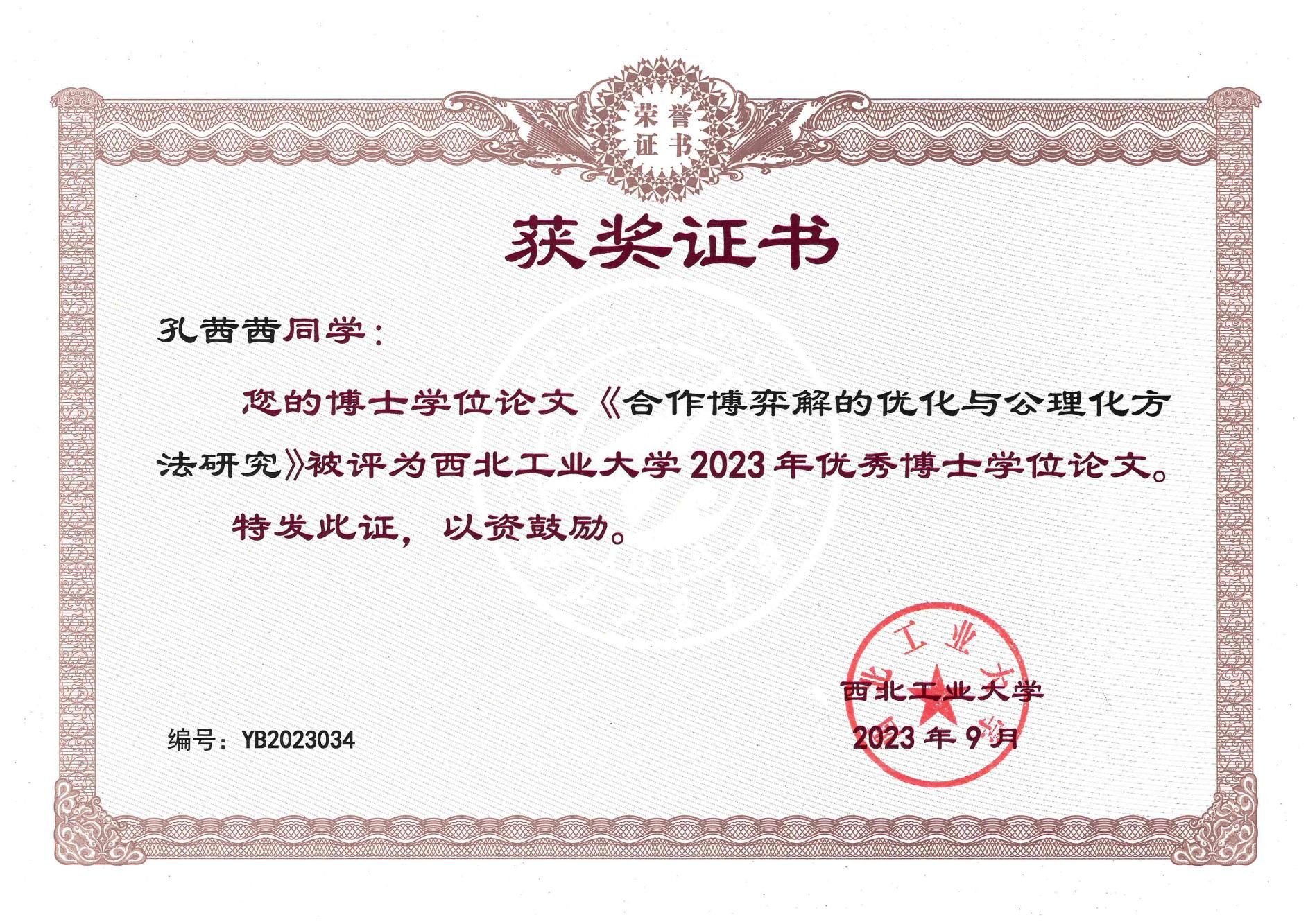 《合作博弈解的优化与公理化方法研究》-孔茜茜(导师:孙浩)