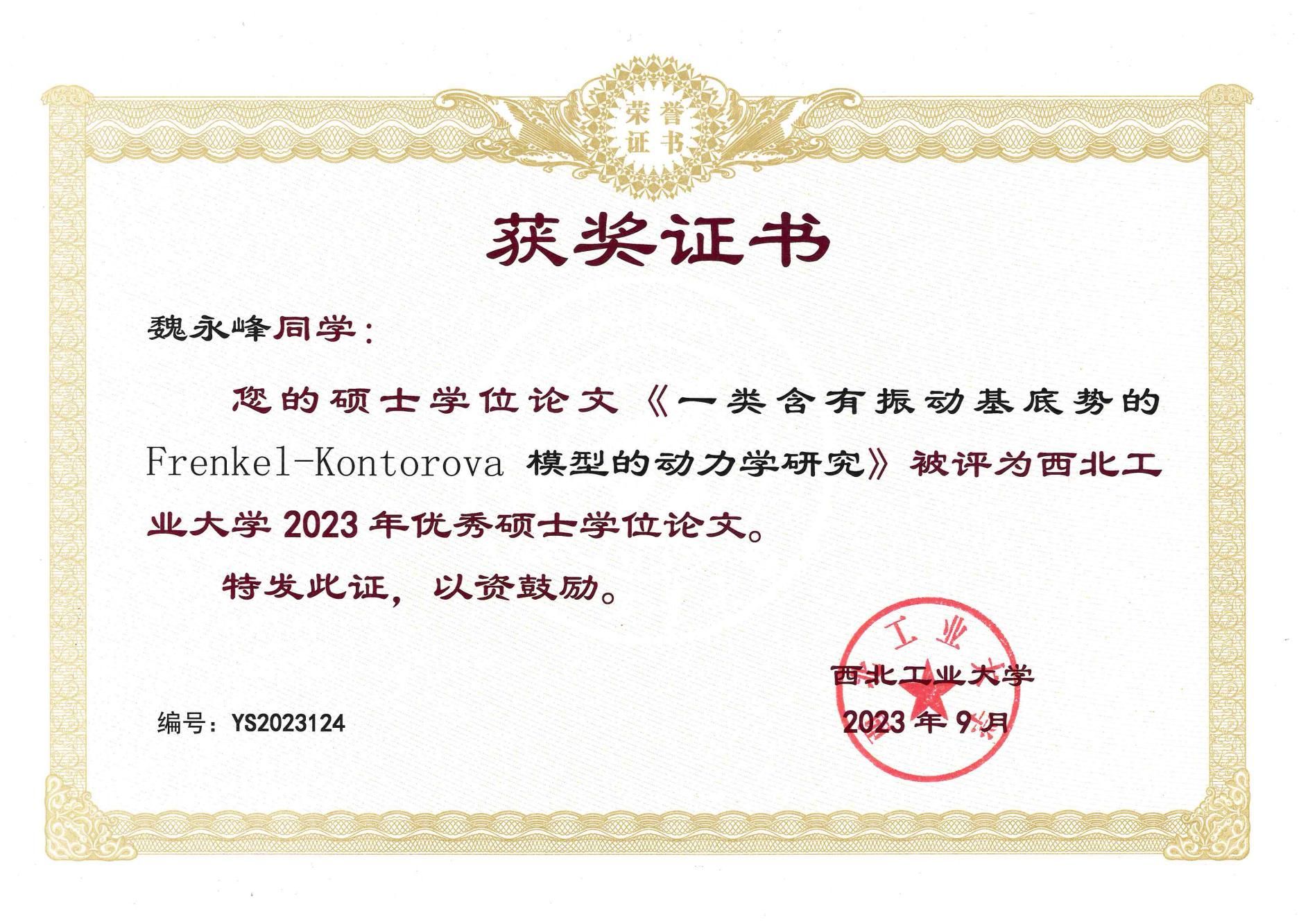 魏永峰, 女, 应用数学专业, 师从雷佑铭教授, 研究方向为非线性动力学。硕士在读期间,以第一作者在非线性动力学领域顶级期刊Physical Review E上发表学术论文一篇,参与两项国家自然科学基金面上项目。曾获得十大外围足球平台app研究生学业一等奖学金、“十大外围足球平台app第二届研究生学术论坛”三等奖及“多维视觉” 科创一等奖学金等。