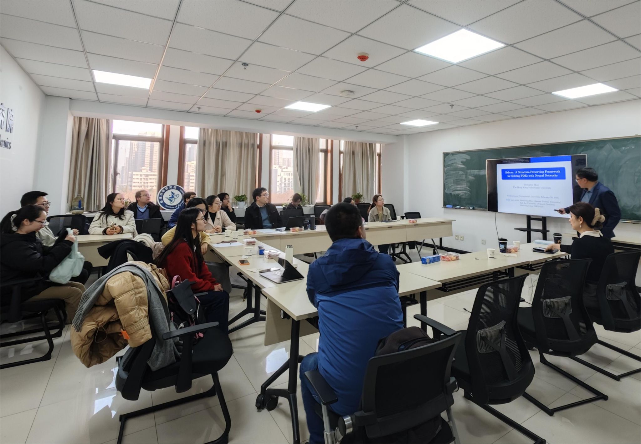 为拓展智能计算新方向,加强与国内外高校及科研机构的交流合作,2025年2月28日,香港理工大学乔中华教授应邀为公司师生作题为《Sidecar: A structure-preserving framework for solving PDEs with neural net works》的学术报告,报告会由十大外围足球平台app副经理都琳教授主持。
