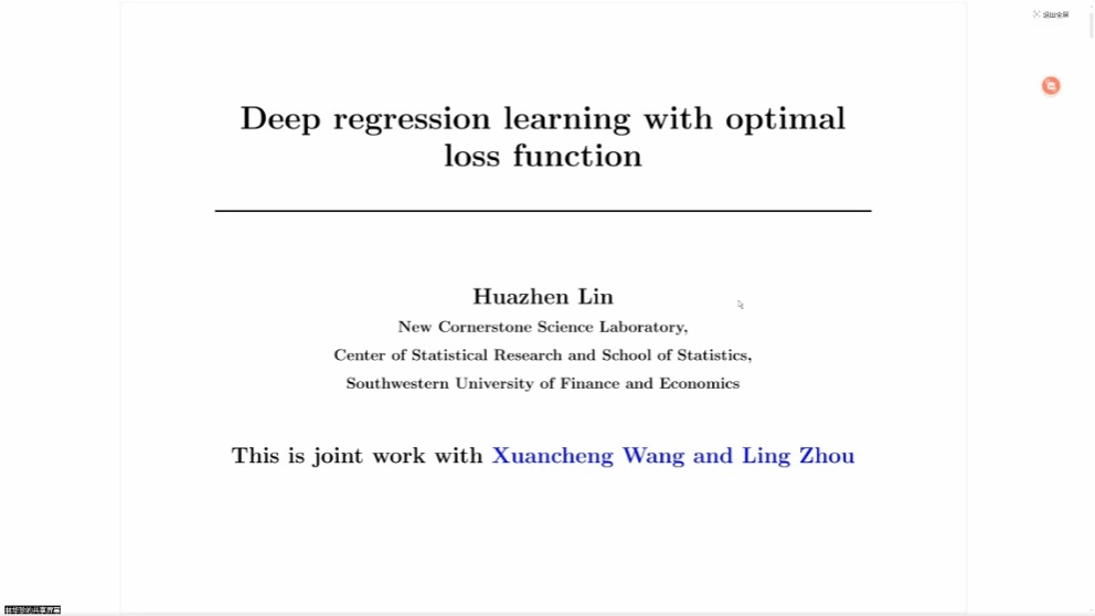 林华珍,西南财经大学首席教授,统计研究中心主任, 首届新基石研究员,国际数理统计学会IMS-fellow,教育部长江学者特聘教授,国家杰出青年科学基金获得者。主要研究方向为深度学习理论、非参数方法、生存数据分析、函数型数据分析、因子模型等。研究成果发表在JASA、AoS、JRSSB及Biometrika等国际统计学四大顶刊上。先后担任JASA、Biometrics、JBES等7个国际统计学杂志的副主编,及4个国内权威或核心学术期刊编委。林华珍教授现任国际泛华统计学会ICSA董事会成员,中国现场统计研究会副理事长,中国现场统计研究会数据科学与人工智能分会理事长,全国工业统计学教学研究会副会长。