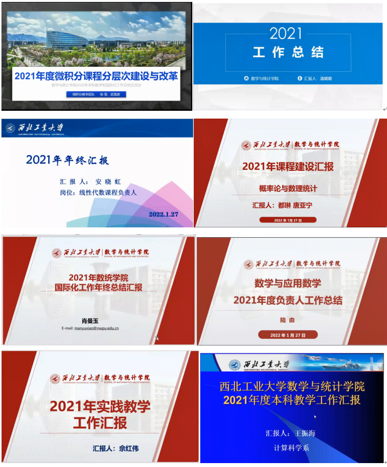 会议中,高等数学、线性代数、概率论与数理统计、复变函数与积分变换、计算方法等几门公共课负责人进行了公共课教学汇报。专业负责人、实践负责人、国际化负责人和招生负责人进行了本科人才培养与国际化工作的汇报。报告涵盖工作思路与措施、工作成效、存在问题与建议等几方面情况,每位老师在总结上一年成果的同时,也深刻反思了工作不足之处,并给出了详细的未来规划。