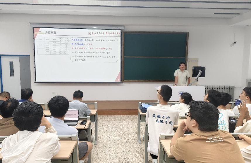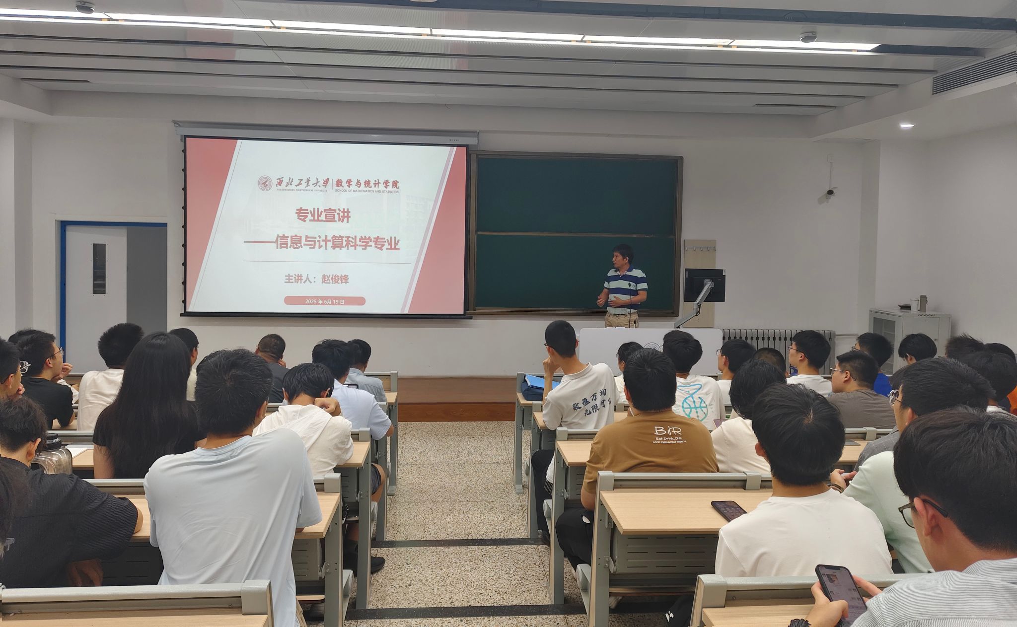 为有效推进“总师育人文化”走深走实,为2024级本科生专业分流答疑解惑,2025年6月19日晚,十大外围足球平台app在教西B205召开专业宣讲会。副经理郭千桥、经理助理兼2024级辅导员班凯、数学科学系副主任夏健康、计算科学系主任赵俊锋、应用概率统计系主任王亮、教学秘书李彦吉及全体149名2024级本科生参会。会议由郭千桥主持。