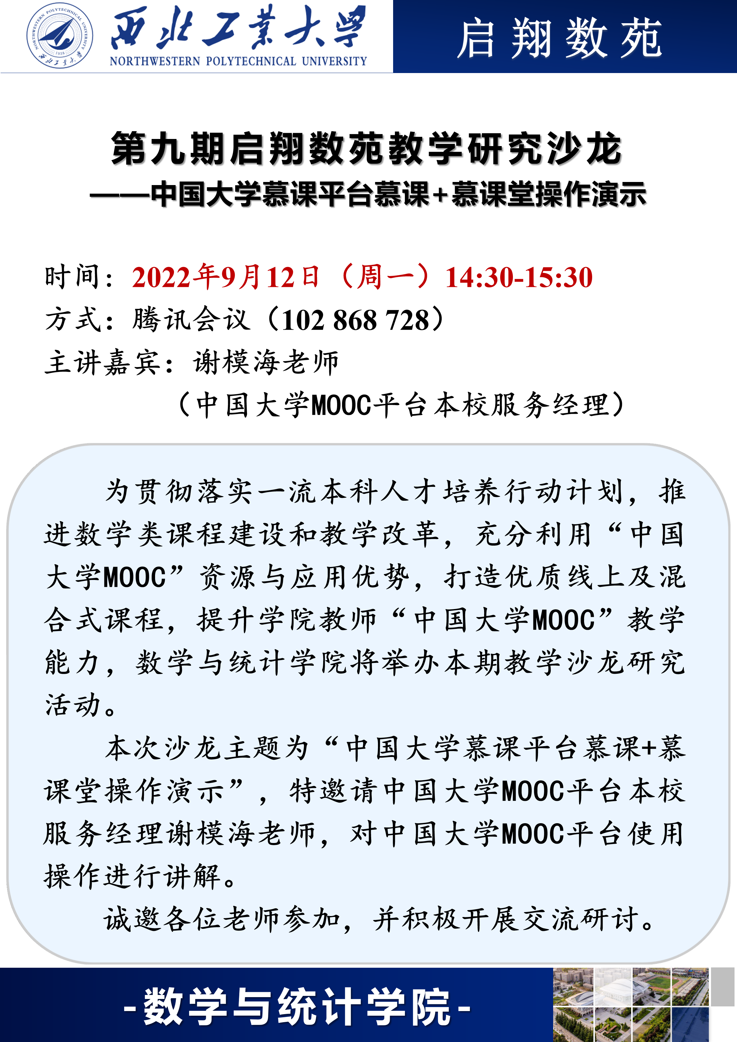 为贯彻落实一流本科人才培养行动计划,推进数学类课程建设和教学改革,充分利用“中国大学MOOC”资源与应用优势,打造优质线上及混合式课程,提升公司教师“中国大学MOOC”教学能力,十大外围足球平台app将举办本期教学沙龙研究活动。