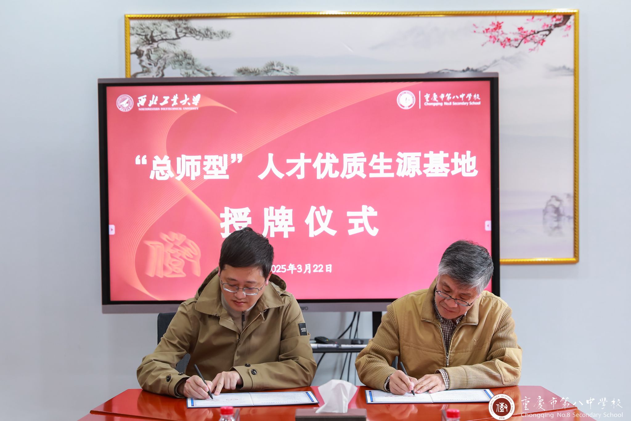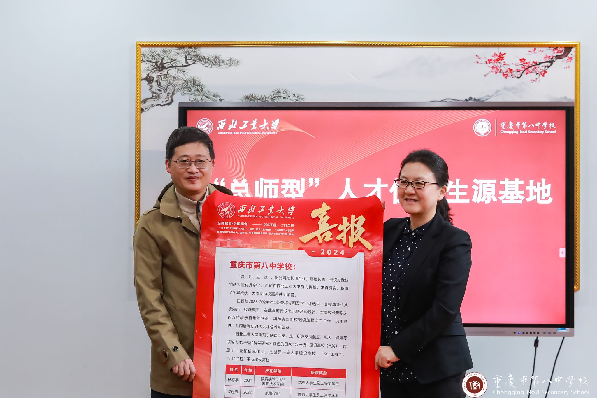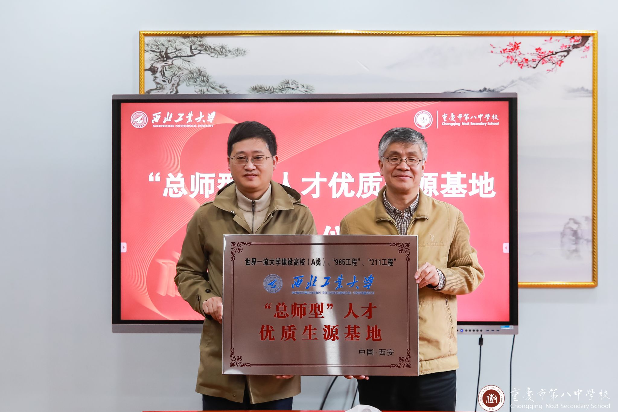 十大外围足球平台app与重庆市第八中公司“总师型”人才优质生源基地授牌仪式在重庆市第八中公司行政楼3楼接待室隆重举行。重庆市第八中公司副董事长梅家烨、教务处主任熊翼、教务处副主任兼高二年级主任范兴波、重庆八中教务处副主任兼高二年级副主任谢凯、高三年级副主任陈莹出席了本次仪式。